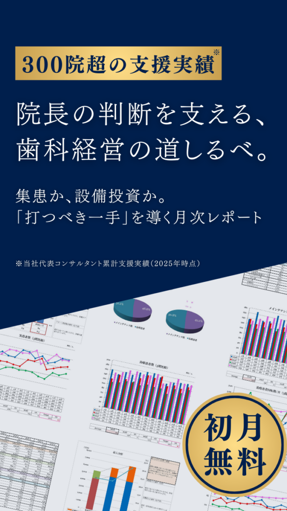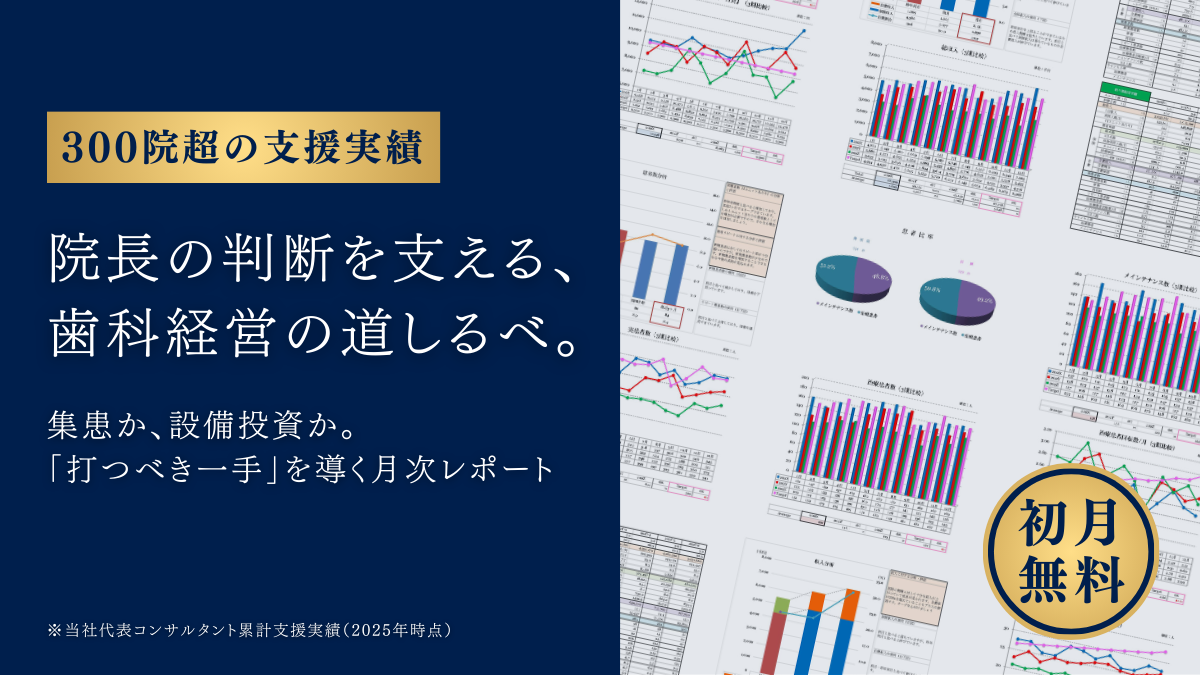 以前は具体的な改善策が分からず悩んでいましたが、経営診断レポート導入後は、毎月の明確な課題指摘に基づく改善に着手できました。結果、経営状況は確実に改善しています。特に、ツールを活用した診療のシステム化により、患者様への説明が格段に分かりやすくなり、治療への満足度向上を実感しています。